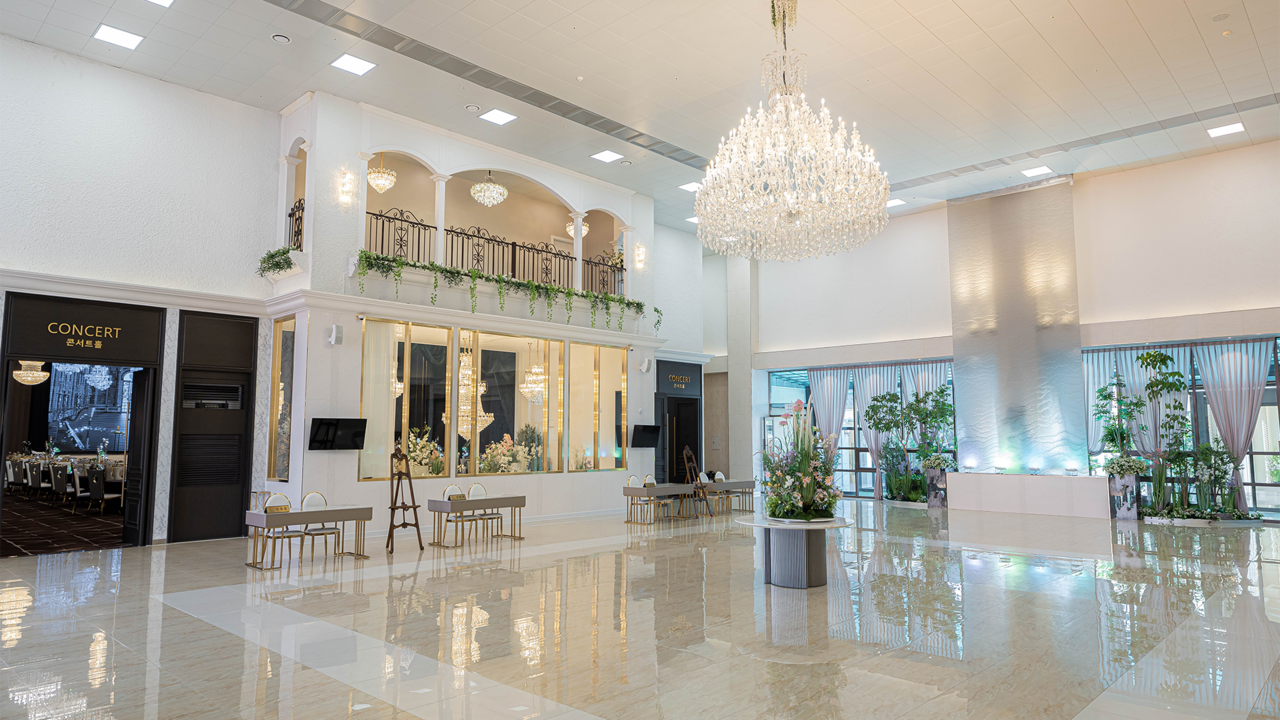 12m 높이의 높은 층고와 약 200평 ~ 100평 규모의 다양한 웨딩홀, 1000평 넓이의 연회장까지 대구지역에서 넓고 높은 쾌적한 웨딩환경을 자랑하는 웨딩 특화 브랜드 칼라디움 웨딩 입니다.
